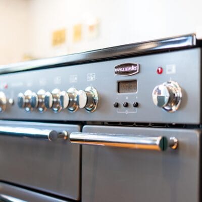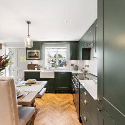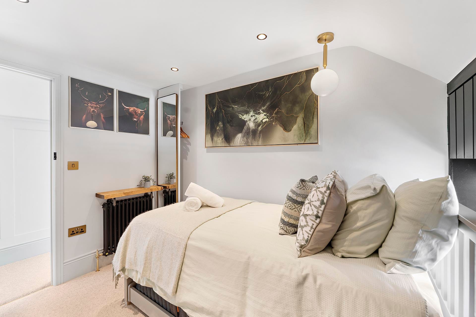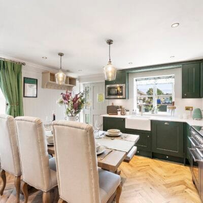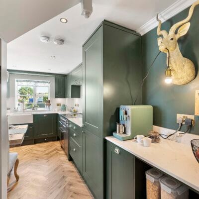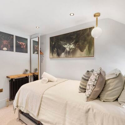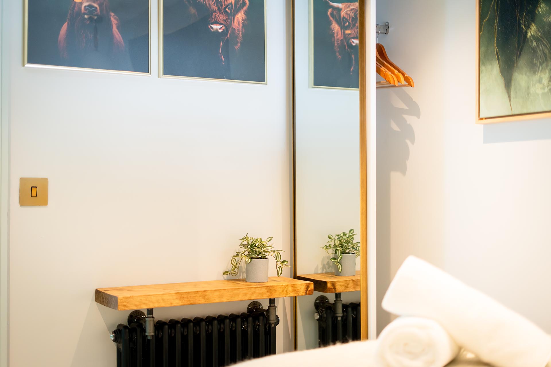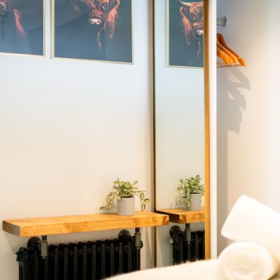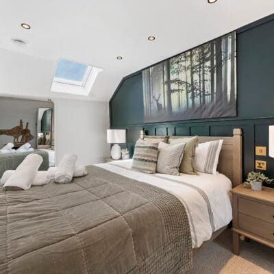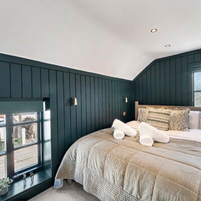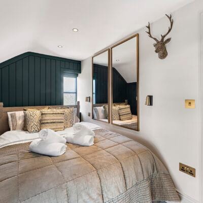 A three bedroom cottage sleeping up to six guests in four separate beds. Two rooms have king sized beds whilst the third has a single with a trundle bed that can be pulled out. All beds have Emma Hybrid Airgrid memory foam mattresses, Emma Premium Cloud Pillows, sumptuous throws and lavish bedding from The Cotswolds Company ensures a sound night’s sleep. There are hanging rails and storage units and drawers and full length mirrors throughout.