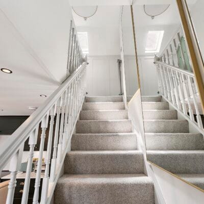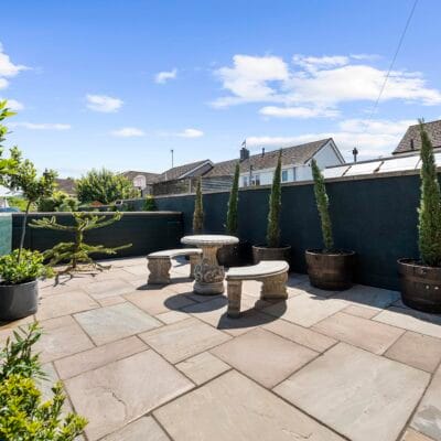 Outside we have a private use, double space, granite driveway accommodating two cars with a Project EV APEX 7.3kW AC charger included. There is also additional on-street parking on George Street. The courtyard is Raj Green Sandstone with solid seating and picnic area providing a peaceful space to relax with a Monkey Puzzle tree and Italian Cypress trees.